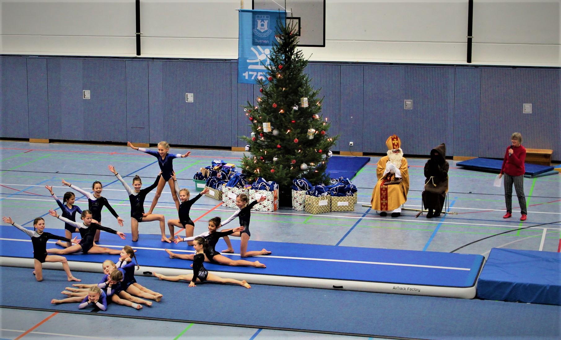 Das Publikum, ebenso die Ehrengäste Nikolaus und Knecht Ruprecht zollten begeistert Beifall für die abwechslungsreichen Vorführungen der kleinen Turnerinnen und Turner. Mit glänzenden Augen und glücklich nahmen die Kinder und ihre Trainer*innen vom Nikolaus ihre Geschenke entgegen.