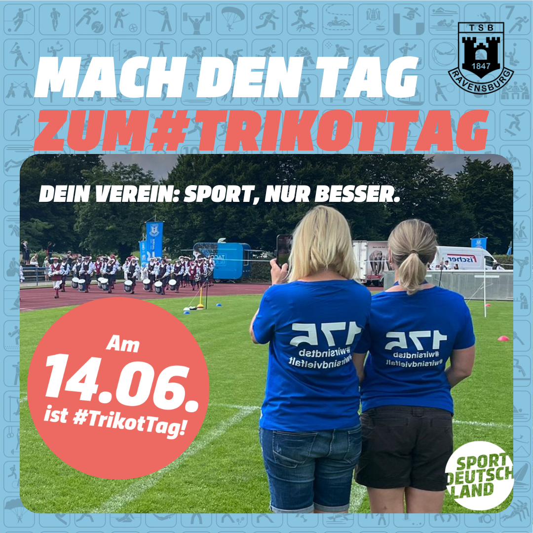 - Macht ein Foto von euch oder eurer Gruppe am Trikottag 14. Juni 2023 im Vereinslook. Es ist dabei egal, ob Trikot, Trainingsanzug oder T-Shirt angelegt wird – Hauptsache Vereinsname und/oder Vereinslogo und/oder Vereinsfarben etc. sind zu sehen.
